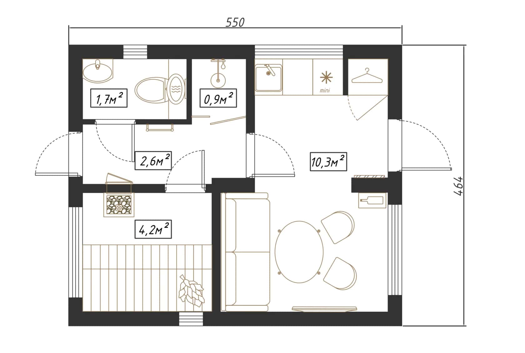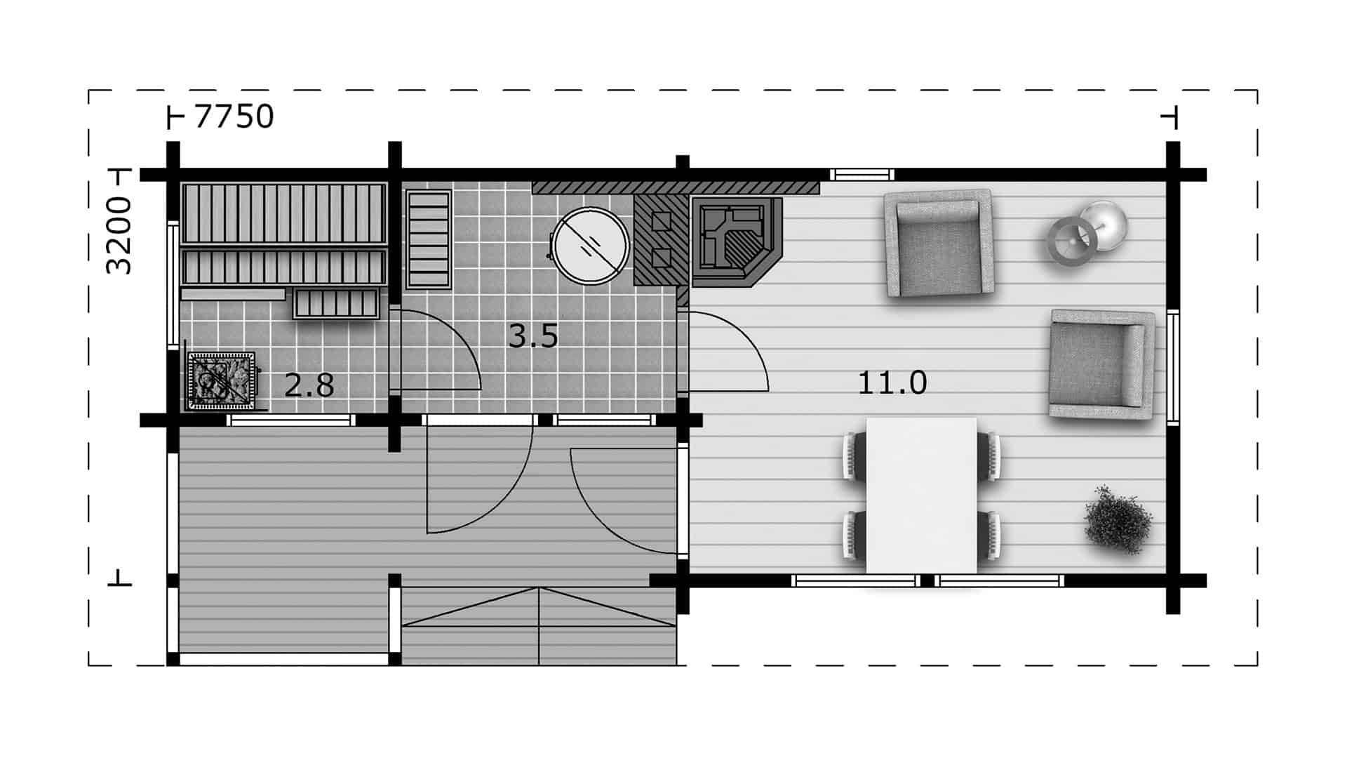 Выполнены из клееного бруса на выбор: 80/140/160/200 мм