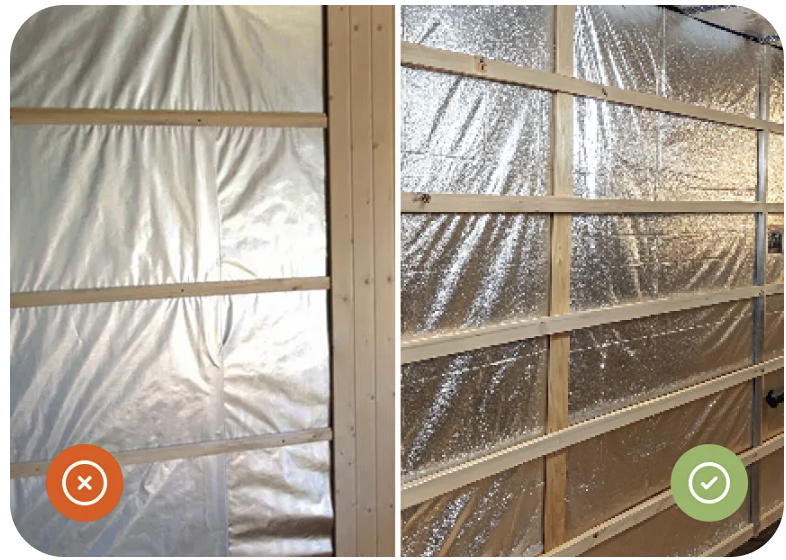 Внутри пароизоляция и отражающая фольга для бань и саун